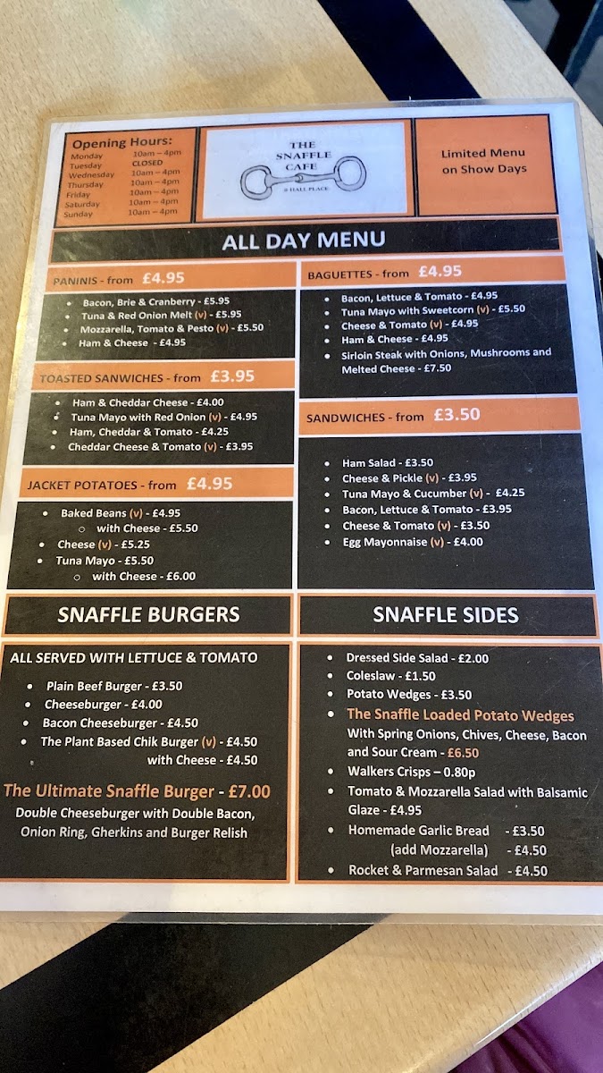Welcome to The Snaffle Cafe, a delightful retreat nestled in the Hall Place Equestrian Centre in Tilehurst, Reading. This charming cafe is perfect for anyone looking to recharge after a brisk walk or a busy day.